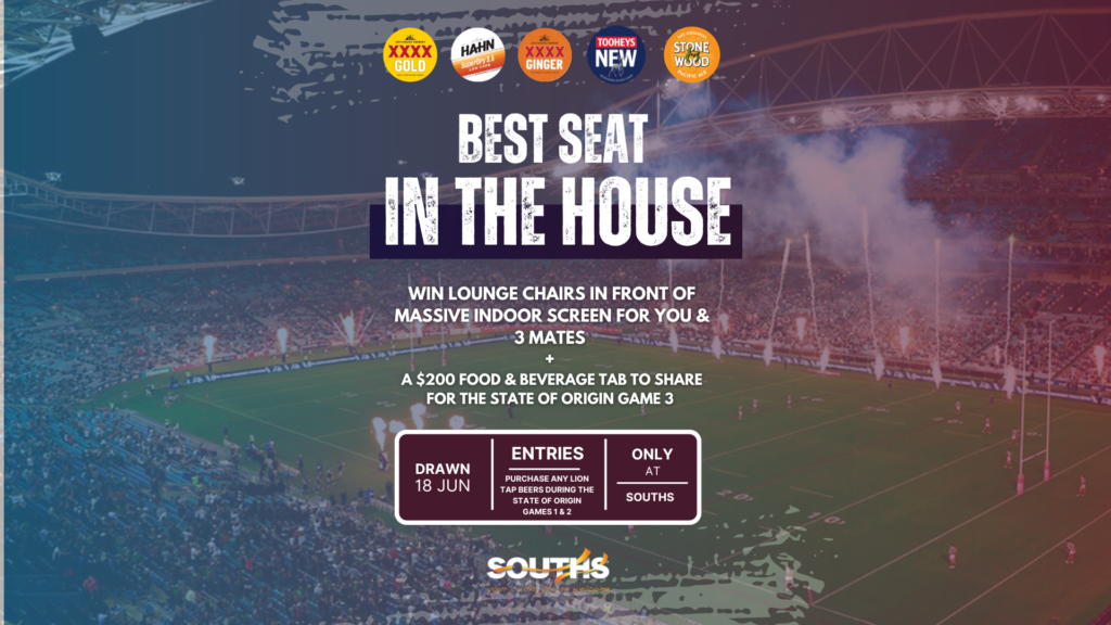 Watch the game live at Souths and purchase any Lion Tap Beers during the State of Origin Game 1 & go in the draw to WIN.
